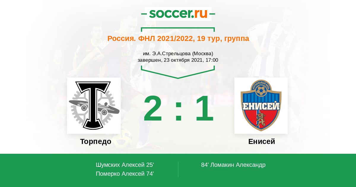 Протокол матча Торпедо против Енисей