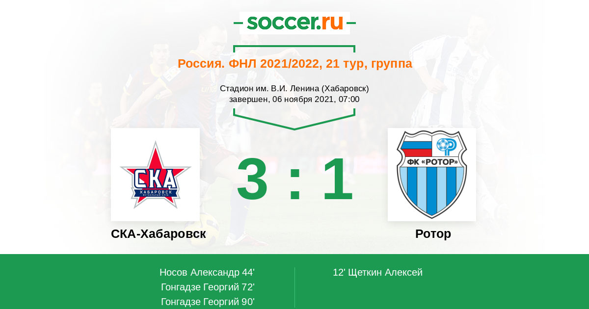 В этой встрече между командами СКА Хабаровск и Ротор главное набрать очки каждой из команд. Для хозяев победа позволит подняться с шестого места на четвёртое и продолжать бороться за путёвку в РПЛ а для Ротора поправить своё турнирное положение. Прогноз на этот матч тотал больше в 1-м тайме -1. Удачи