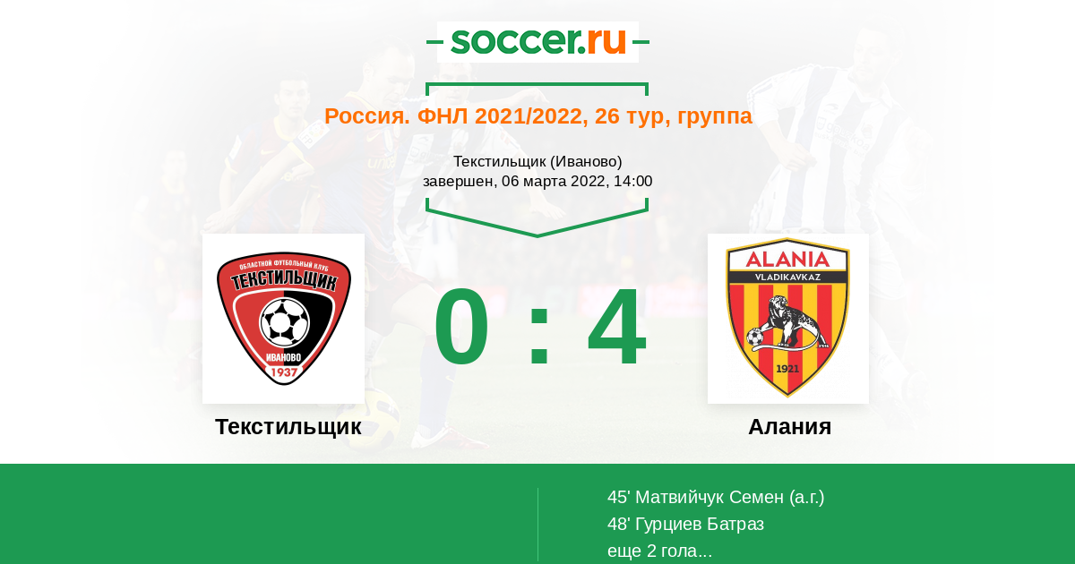 Протокол матча Текстильщик против Алания