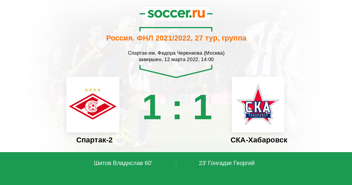 Протокол матча Спартак-2 против СКА-Хабаровск