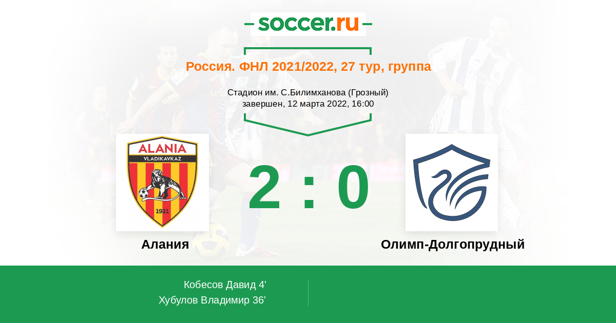 «Алания» очень уверенно провела прошлую встречу против главного аутсайдера дивизиона и добыла крупную выездную победу над «Текстильщиком» (4:0). Коллектив Спартака Гогниева стремится получить путевку в элиту российского футбола и пока все задуманное удается. «Красно-желтые» имеют лучшую группу нападения в чемпионате и забивают очень много, особенно в родных стенах.