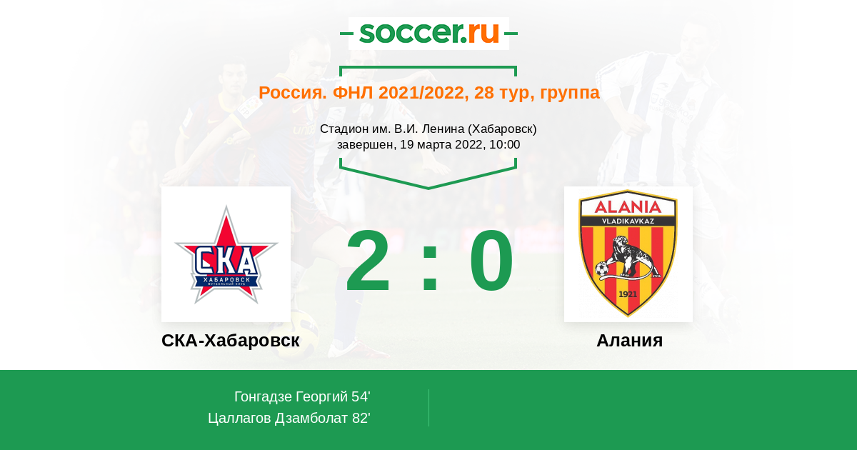 Протокол матча СКА-Хабаровск против Алания