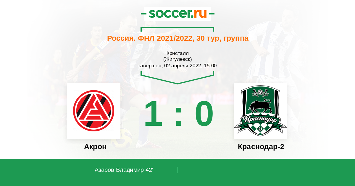 Протокол матча Акрон против Краснодар-2