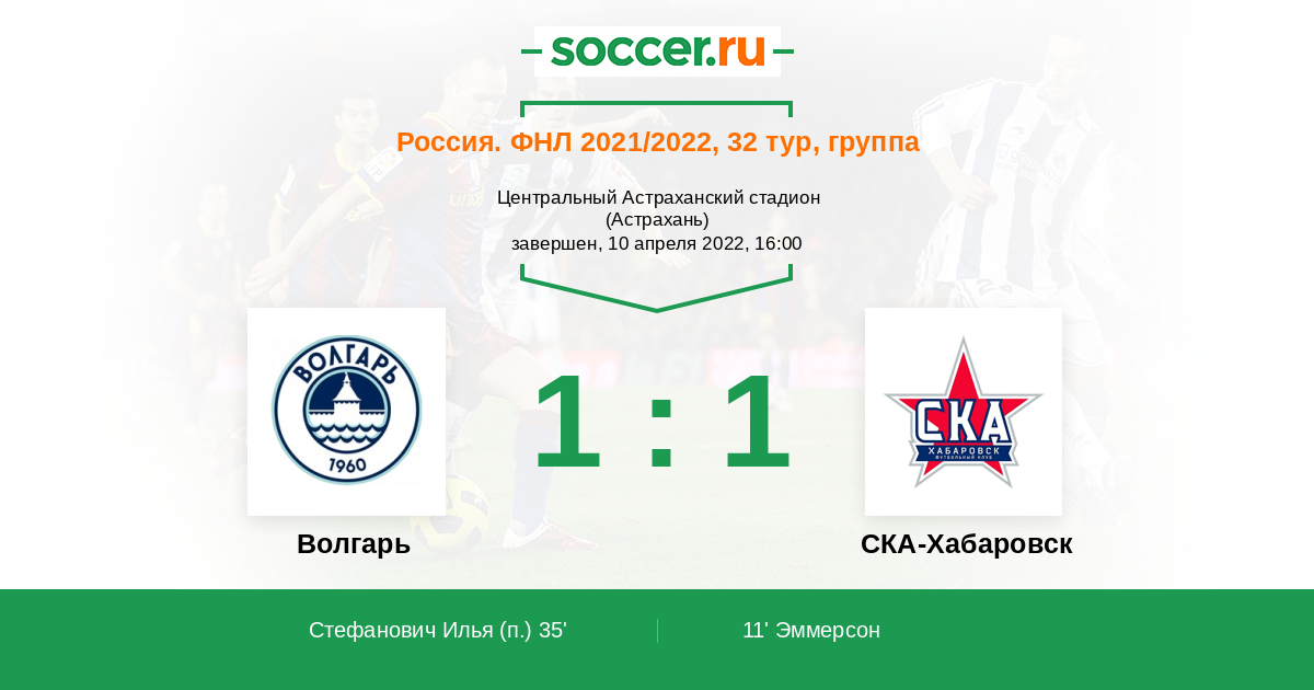Протокол матча Волгарь против СКА-Хабаровск