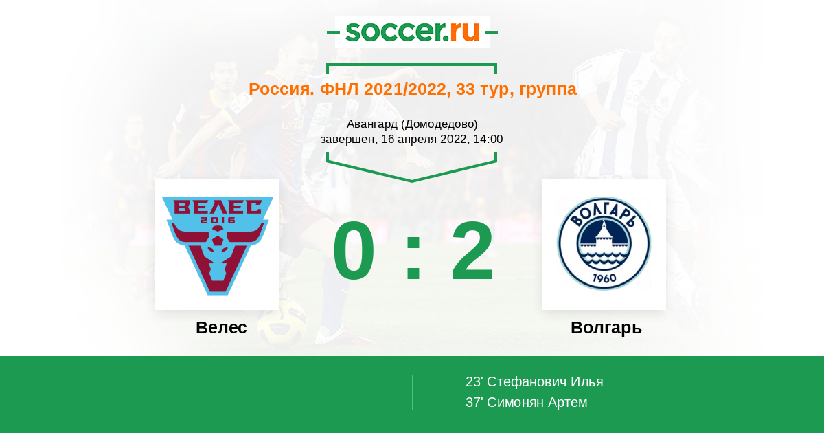 Протокол матча Велес против Волгарь