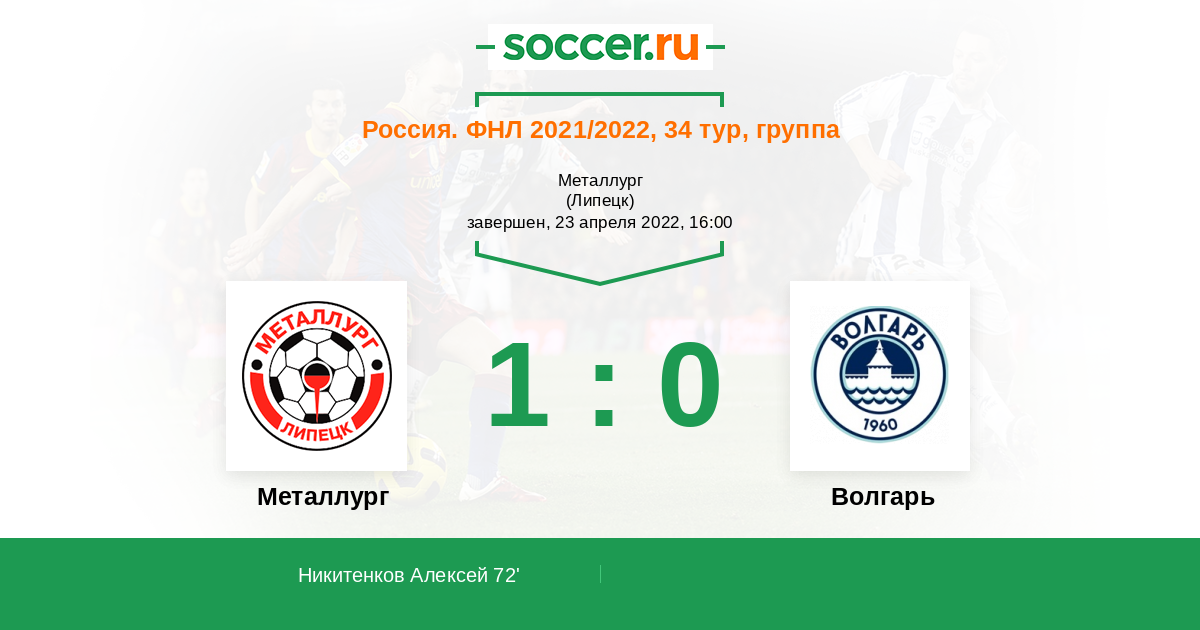 Протокол матча Металлург против Волгарь