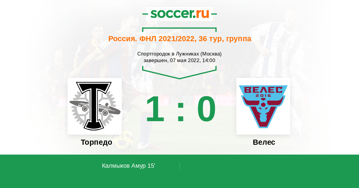 Протокол матча Торпедо против Велес