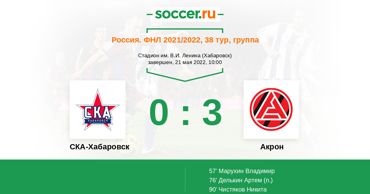 Протокол матча СКА-Хабаровск против Акрон