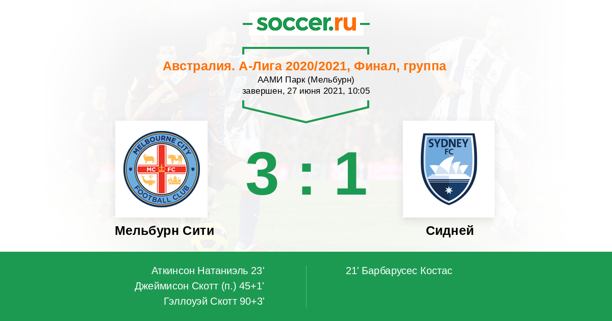 Протокол матча Мельбурн Сити против Сидней
