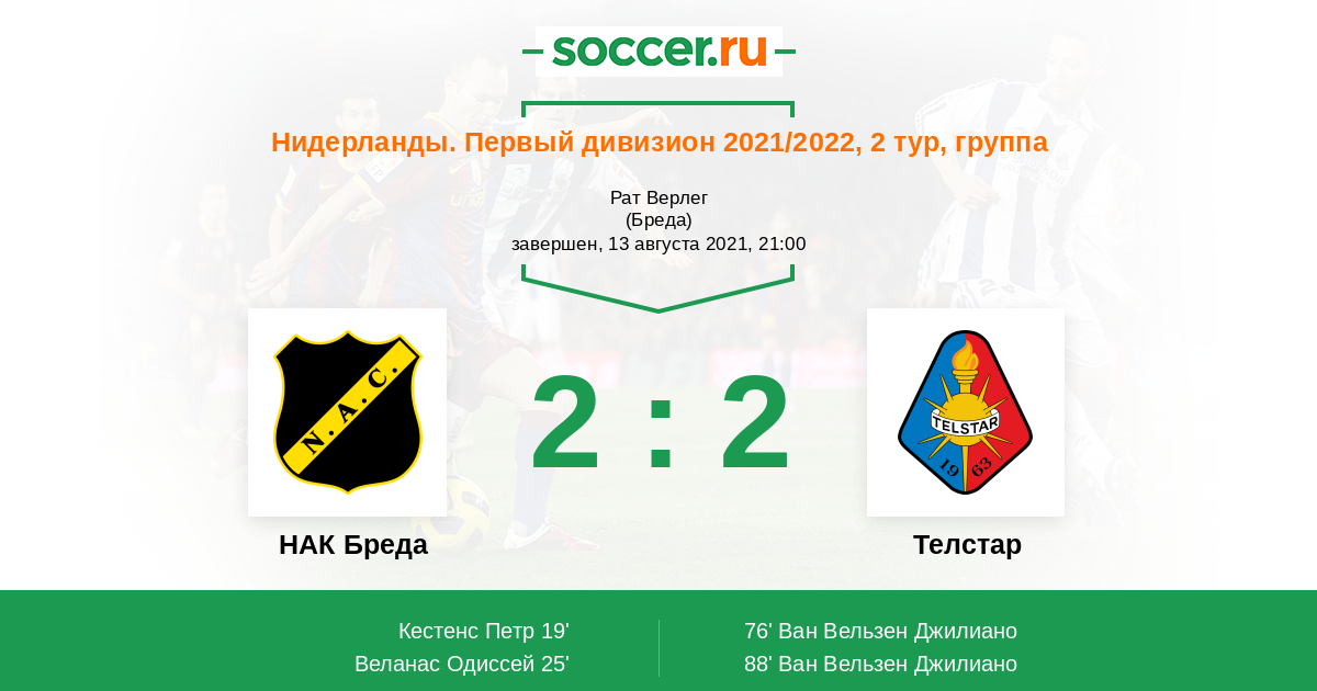 Протокол матча НАК Бреда против Телстар