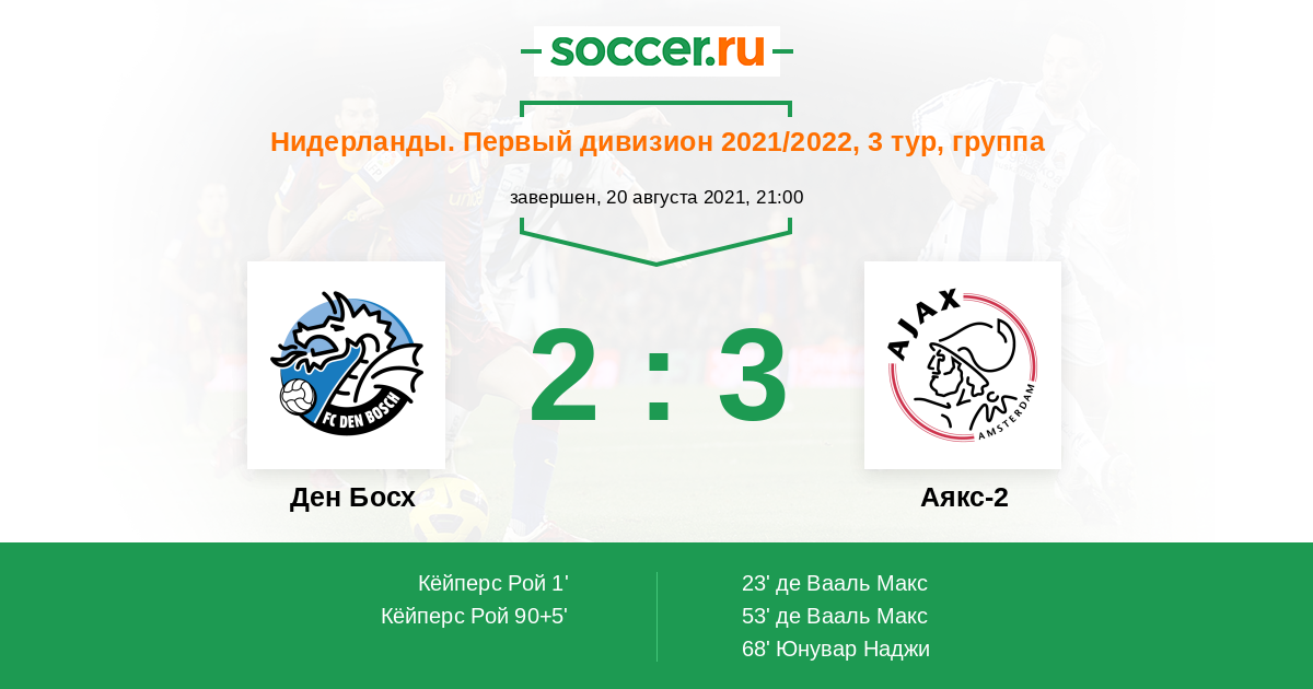 Протокол матча Ден Босх против Аякс-2