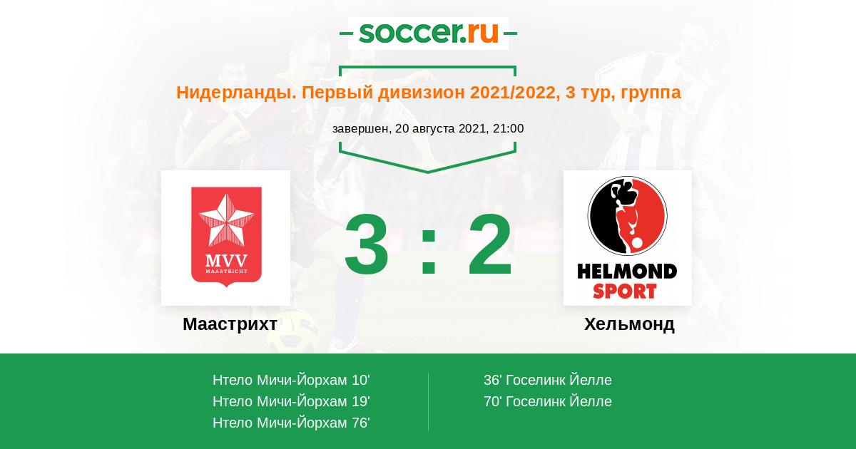 Протокол матча Маастрихт против Хельмонд