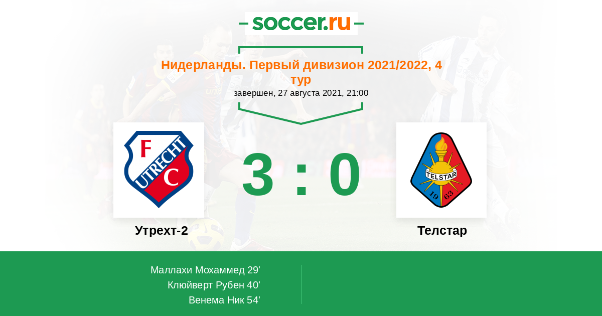 Протокол матча Утрехт-2 против Телстар