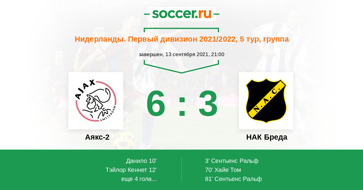 Протокол матча Аякс-2 против НАК Бреда