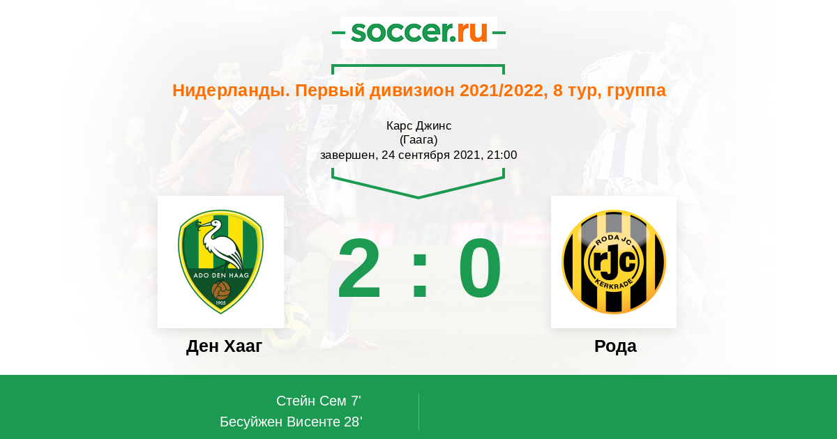 Протокол матча Ден Хааг против Рода