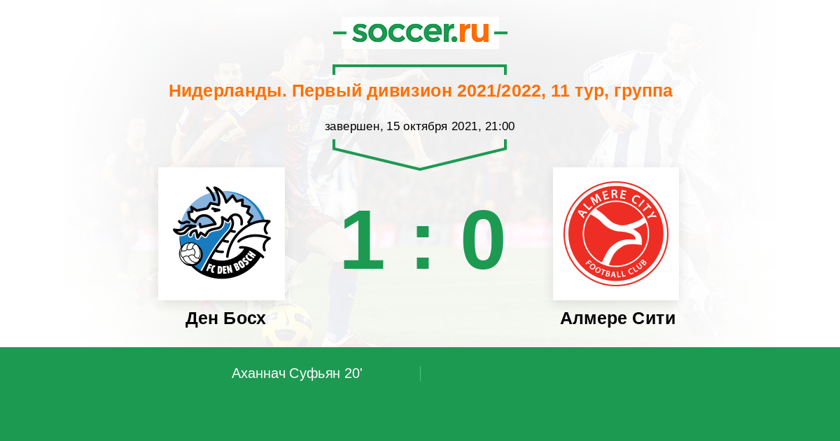 20' (1:0) Аханнач Суфьян (11) (Кёйперс Рой (17))