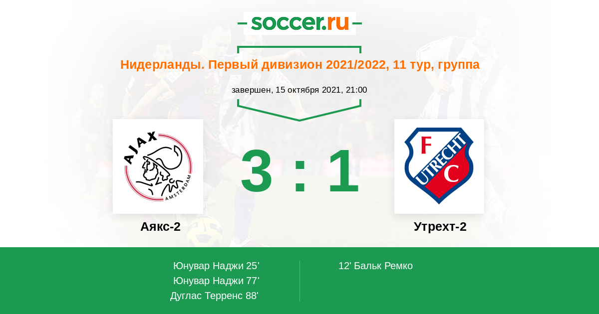 Протокол матча Аякс-2 против Утрехт-2