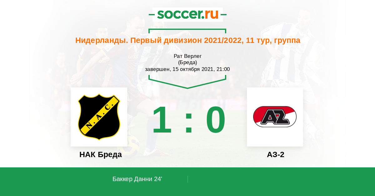 Протокол матча НАК Бреда против АЗ-2