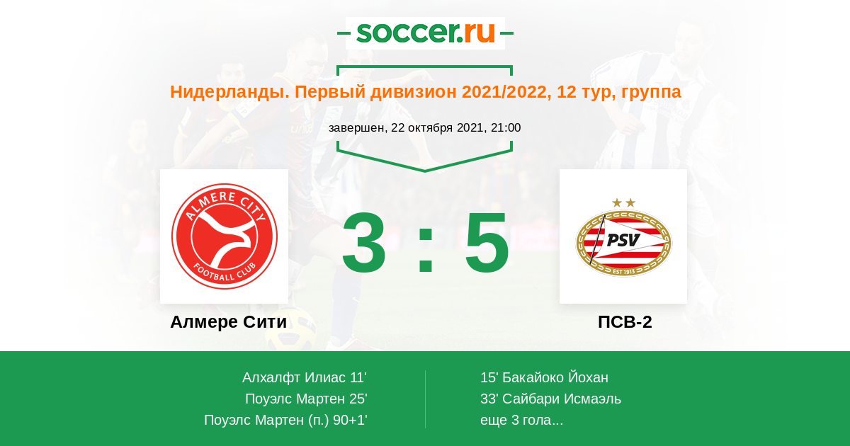 Протокол матча Алмере Сити против ПСВ-2