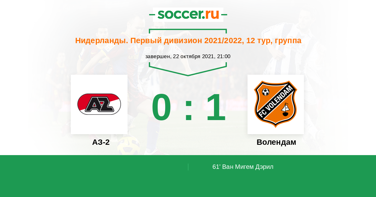 Протокол матча АЗ-2 против Волендам