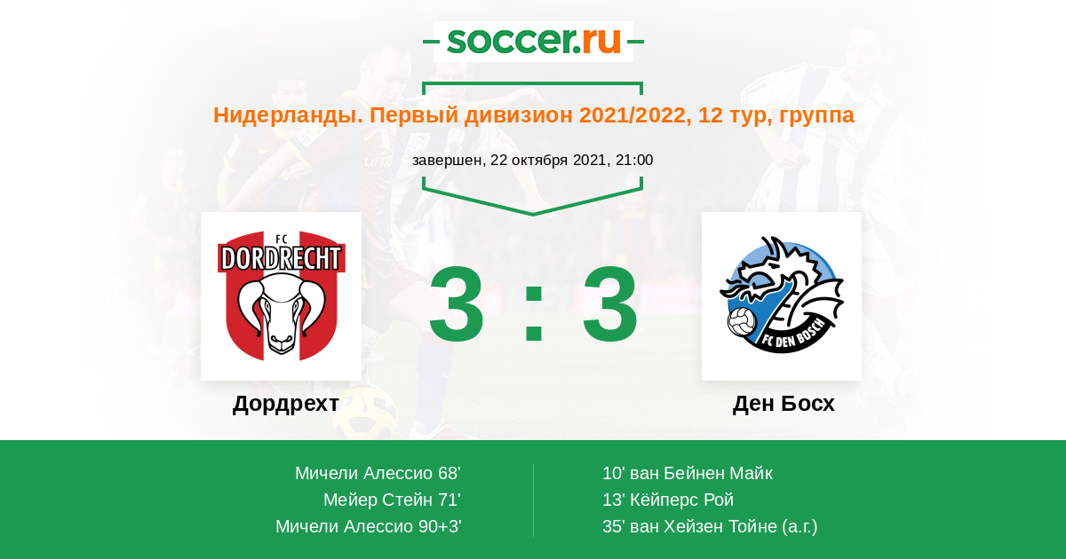 Протокол матча Дордрехт против Ден Босх
