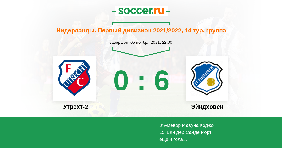 Протокол матча Утрехт-2 против Эйндховен