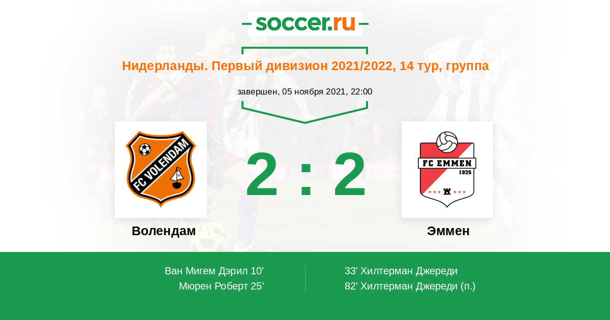 Протокол матча Волендам против Эммен