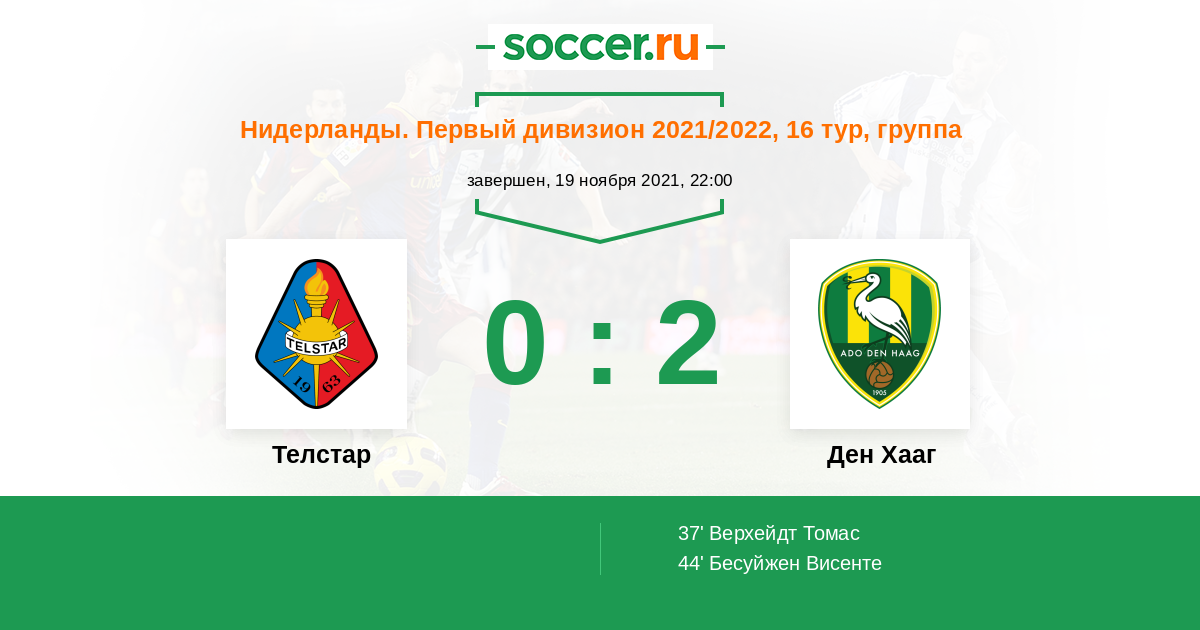 37' (0:1) Верхейдт Томас (9) (Бесуйжен Висенте (7))