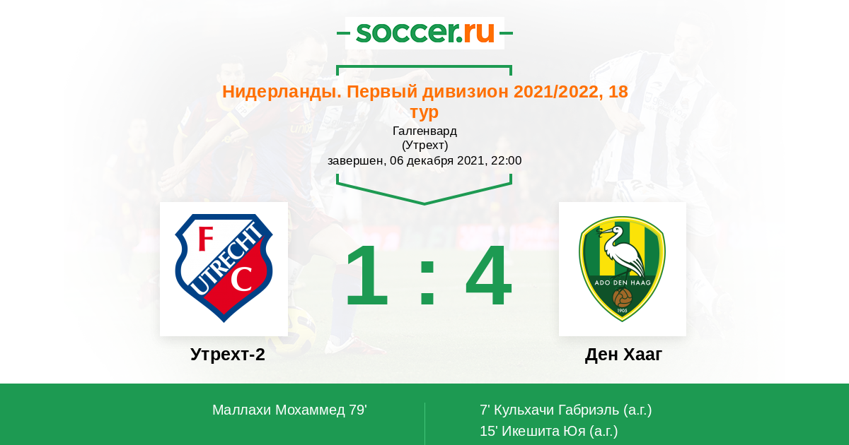 Протокол матча Утрехт-2 против Ден Хааг