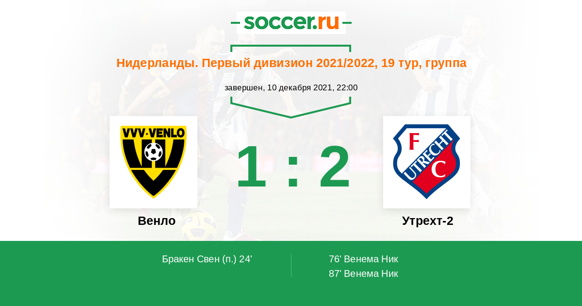 Протокол матча Венло против Утрехт-2