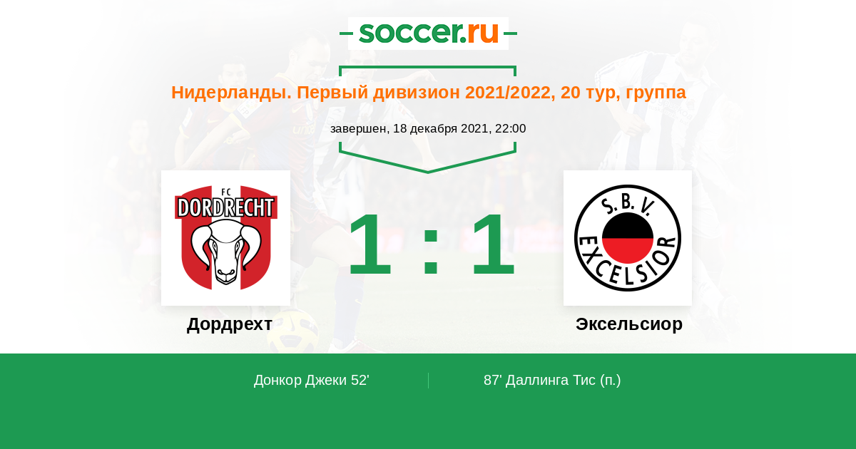Протокол матча Дордрехт против Эксельсиор
