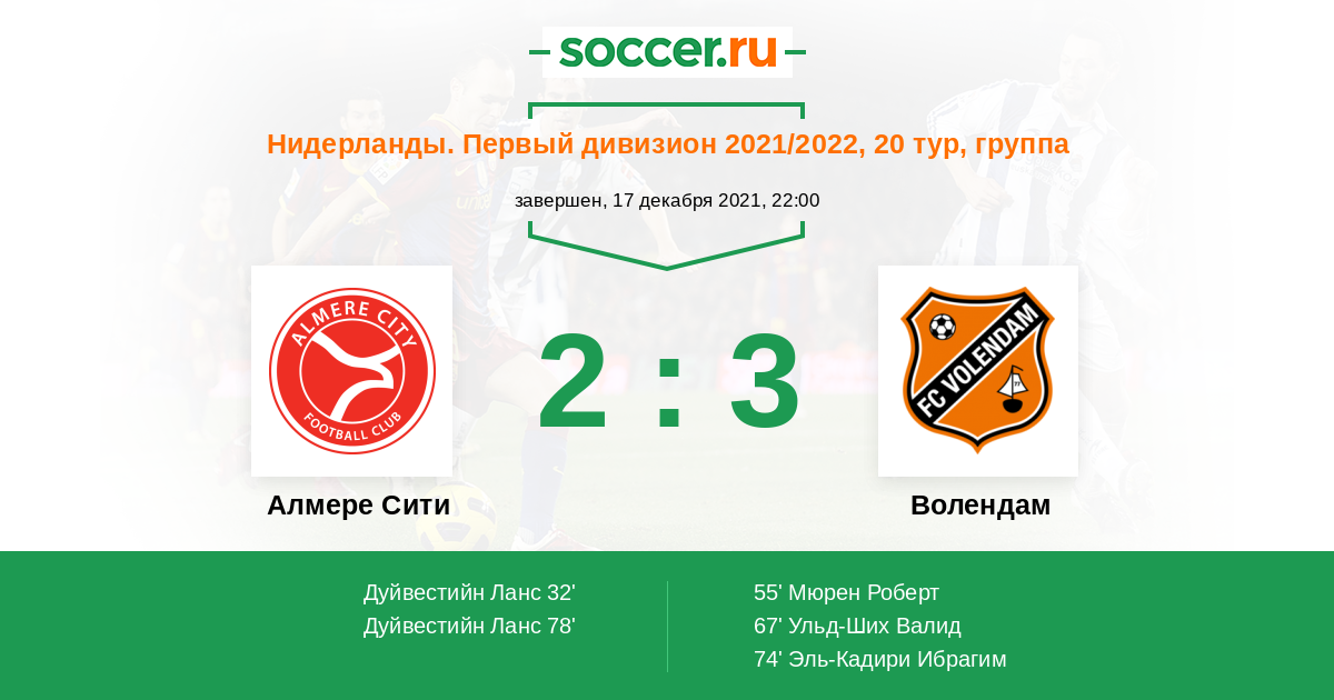 Протокол матча Алмере Сити против Волендам