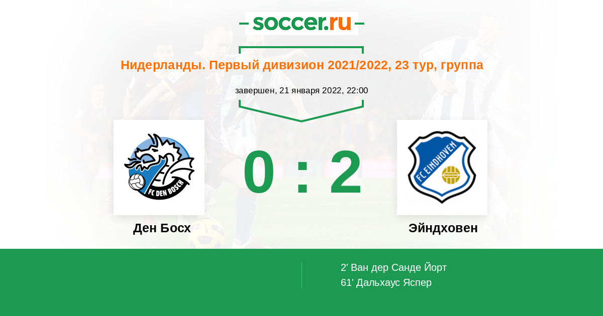 Протокол матча Ден Босх против Эйндховен