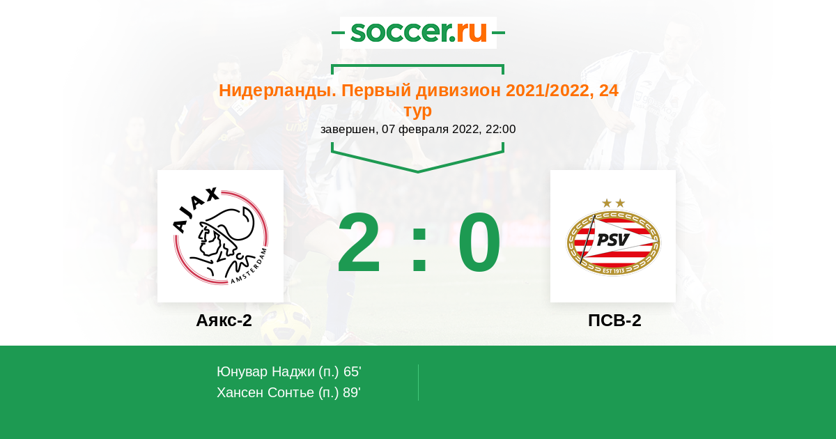 Протокол матча Аякс-2 против ПСВ-2