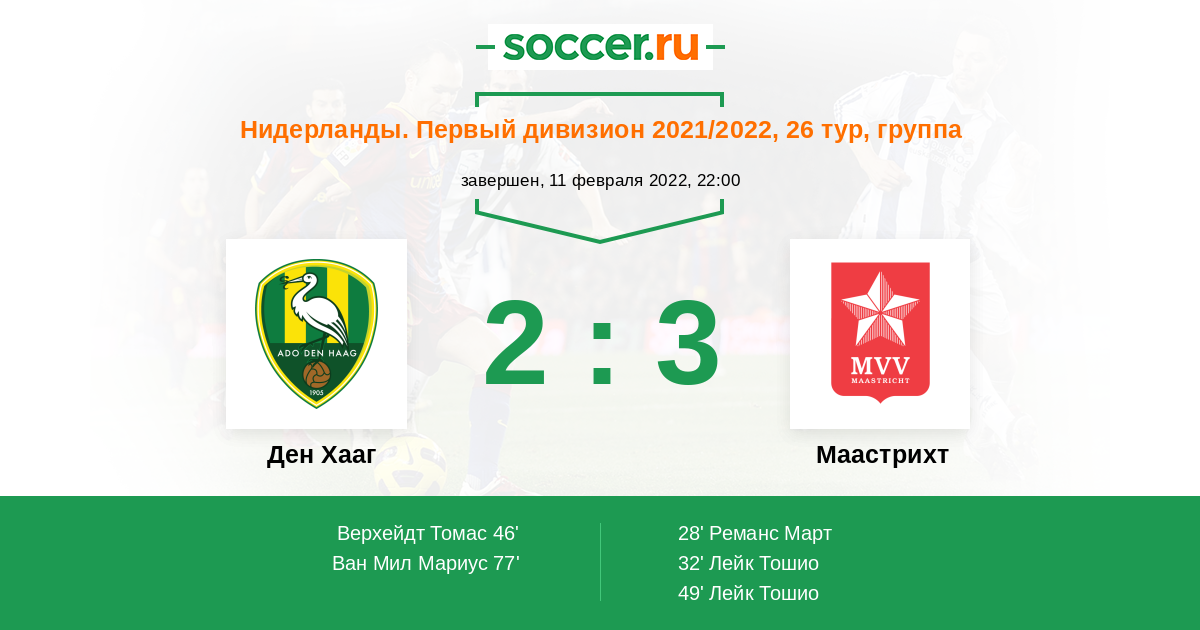 Протокол матча Ден Хааг против Маастрихт