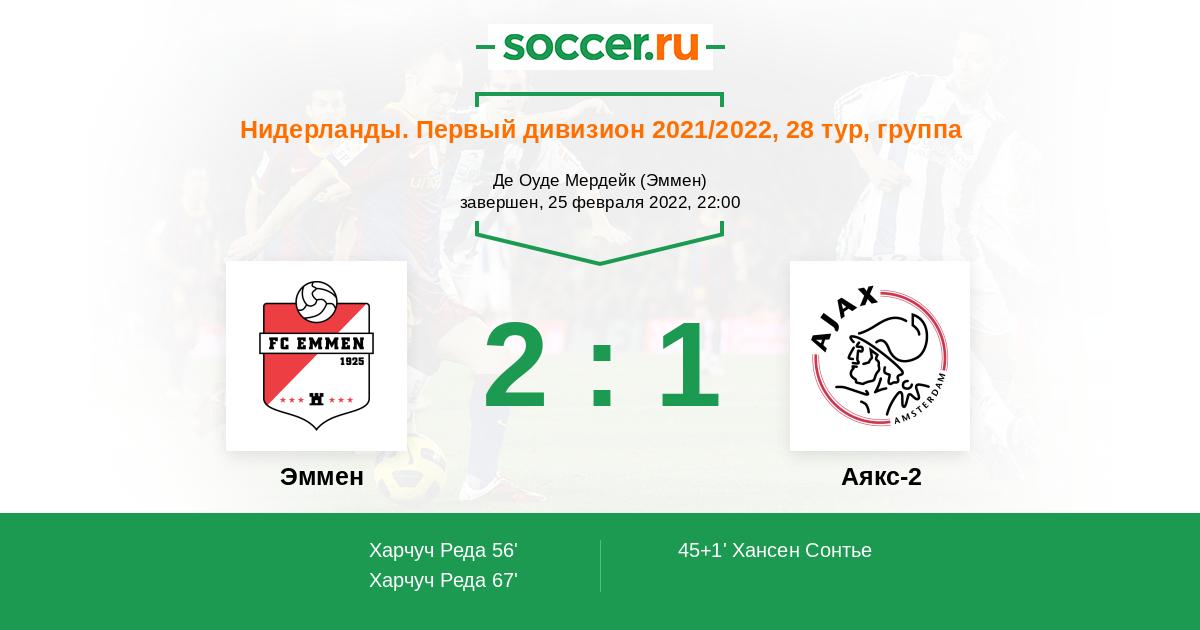 Протокол матча Эммен против Аякс-2