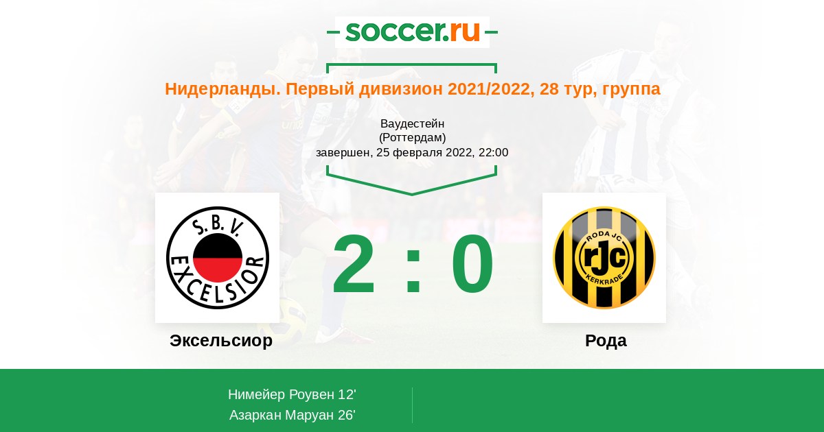 Протокол матча Эксельсиор против Рода