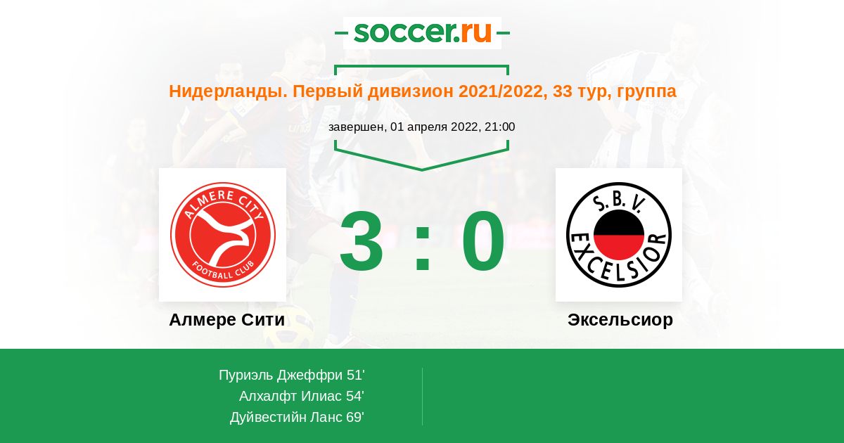 Протокол матча Алмере Сити против Эксельсиор
