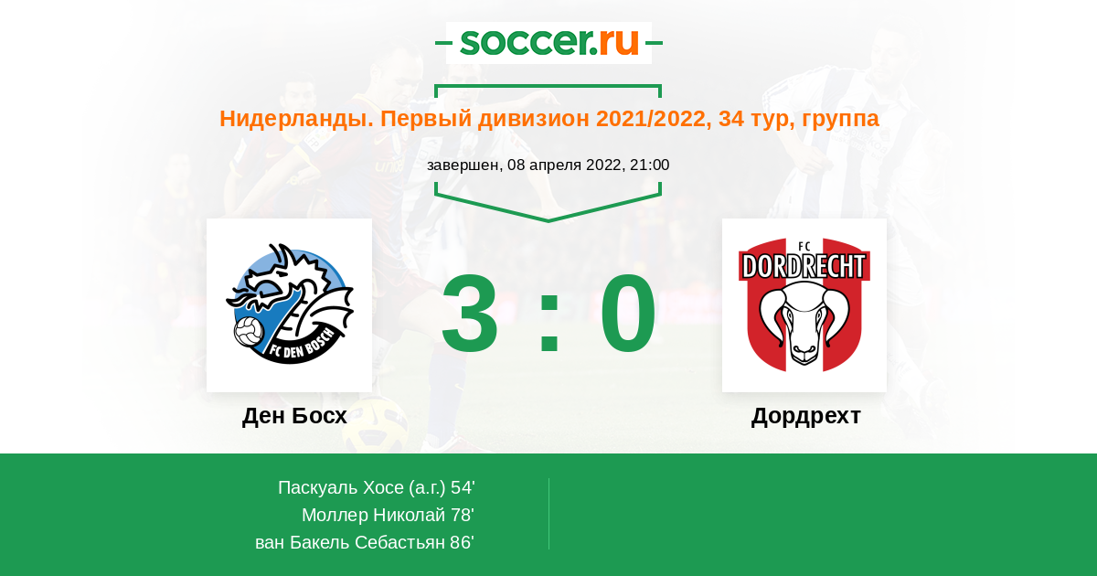 Протокол матча Ден Босх против Дордрехт