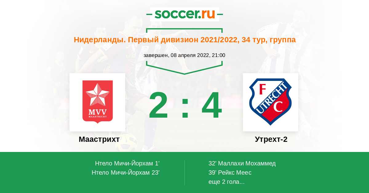 Протокол матча Маастрихт против Утрехт-2