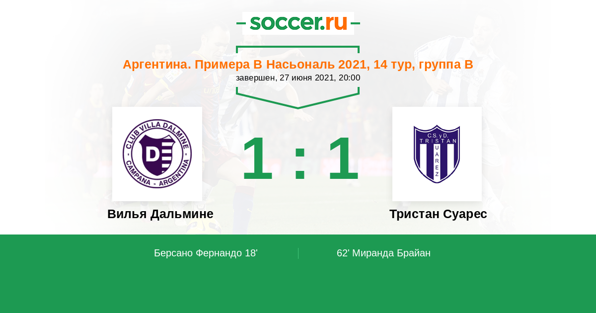 Протокол матча Вилья Дальмине против Тристан Суарес