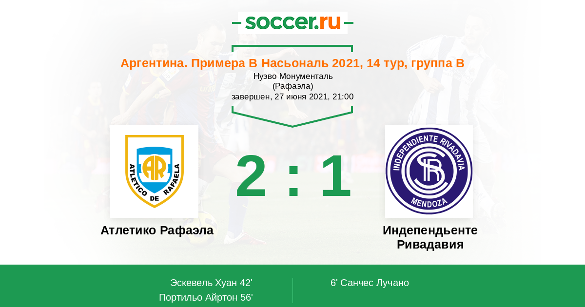 Протокол матча Атлетико Рафаэла против Индепендьенте Ривадавия