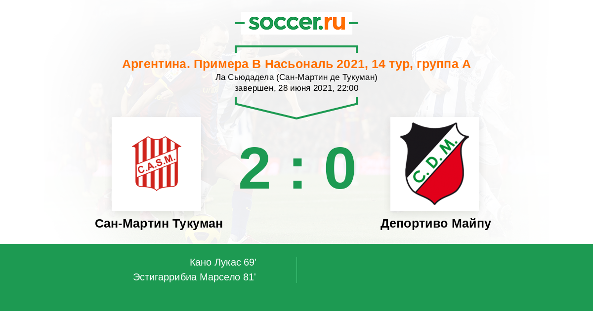 Протокол матча Сан-Мартин Тукуман против Депортиво Майпу