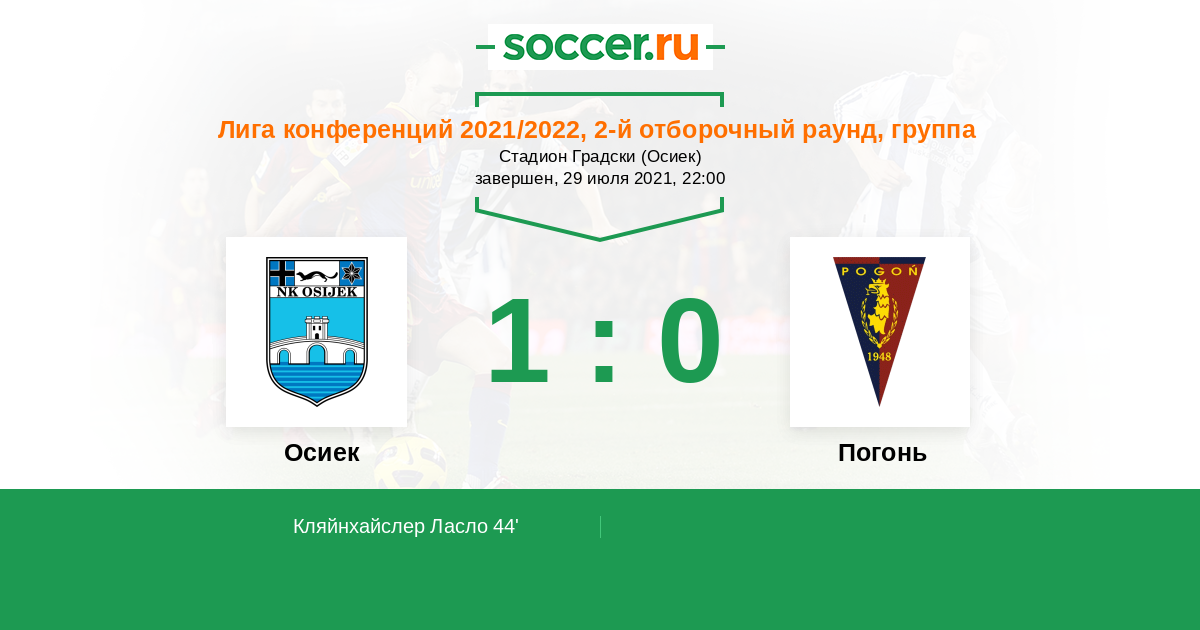 Протокол матча Осиек против Погонь