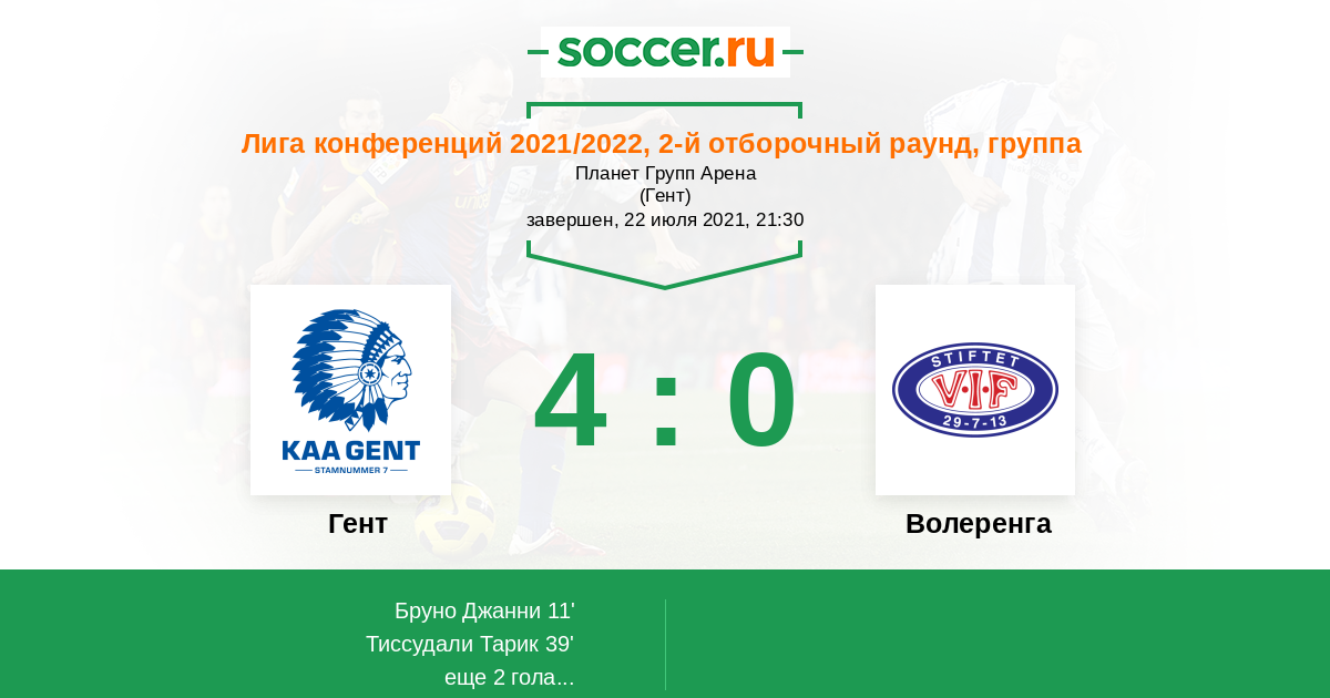 Протокол матча Гент против Волеренга