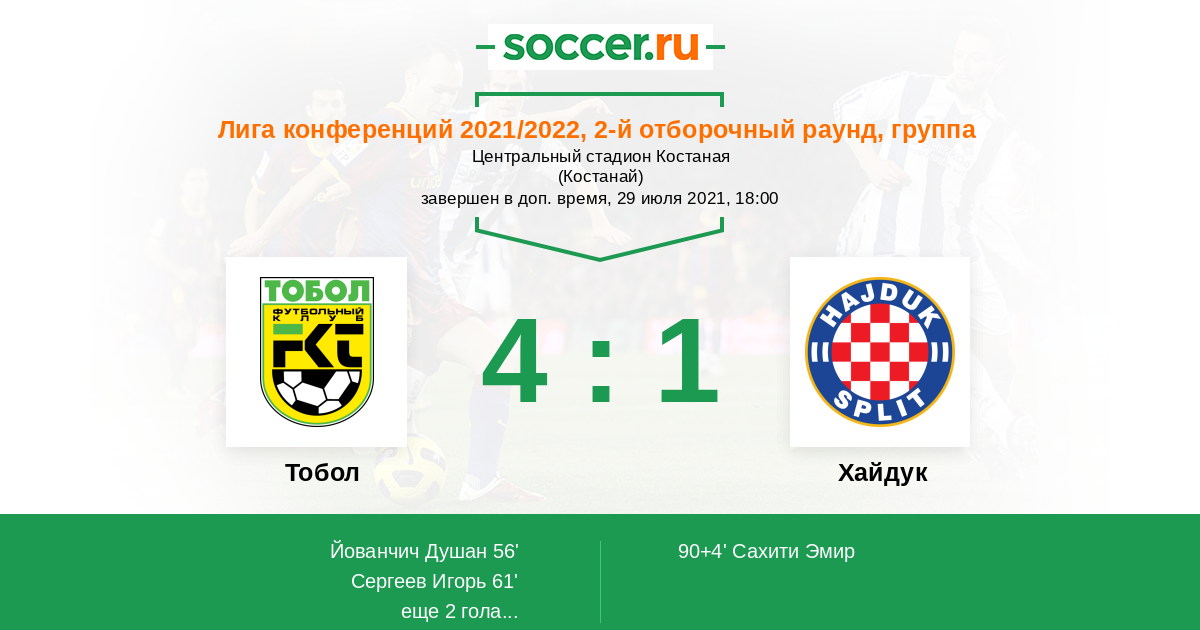 Протокол матча Тобол против Хайдук
