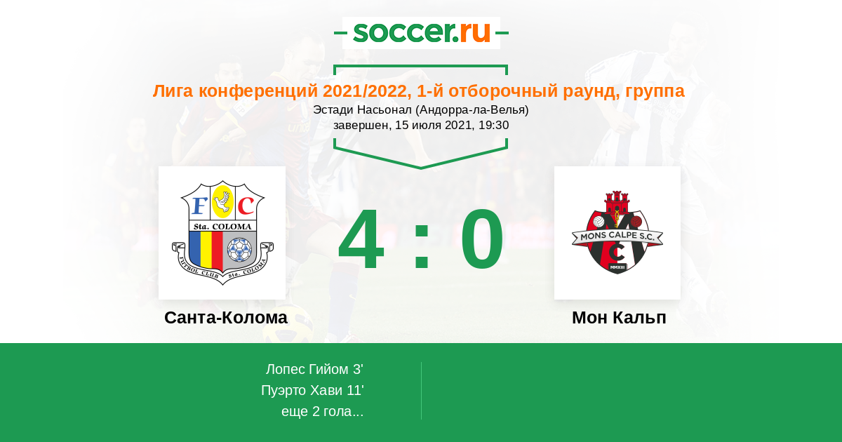 Протокол матча Санта-Колома против Мон Кальп