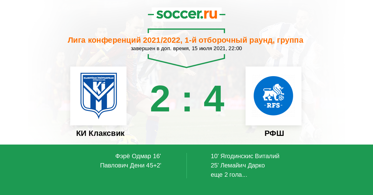 Протокол матча КИ Клаксвик против РФШ