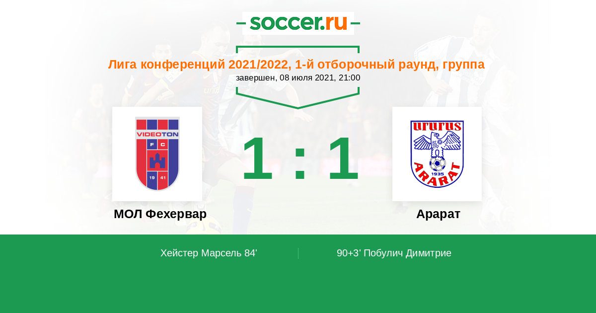 Протокол матча МОЛ Фехервар против Арарат