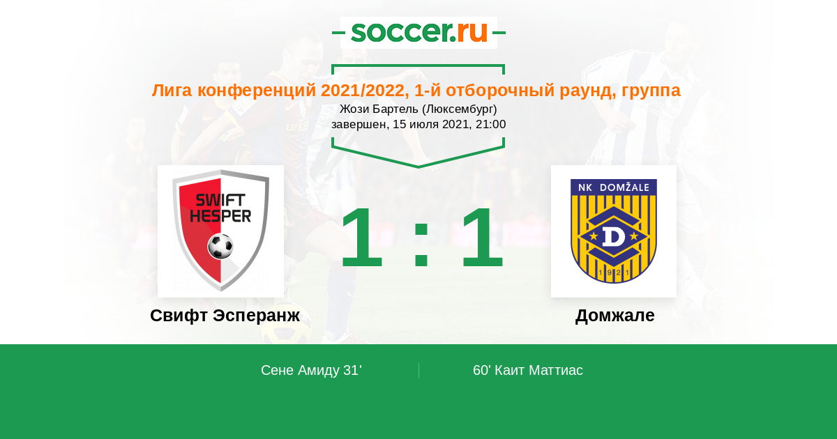 Протокол матча Свифт Эсперанж против Домжале